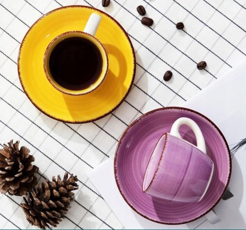 Tato sada obsahuje šest malých šálků na espresso o objemu 90 ml a 6 padnoucích podšálků, v krásných sytě barevných odstínech. Vnitřek šálků je barevně glazovaný v barvě šálku.