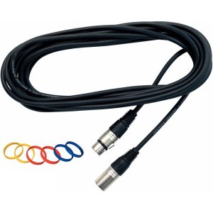 Mikrofonní kabel Konektory XLR (F) - XLR (M) s kovovým pláštěm a plastovým pouzdrem 6 kódovacích kroužků ve 3 barvách Délka kabelu 9 m Tloušťka kabelu 6 mm Černá barva