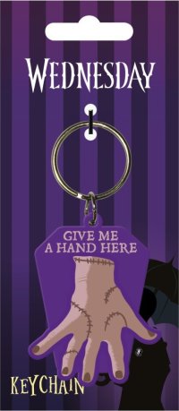 Gumová klíčenka s licenčním motivem ze seriálu Wednesdey a kovovým očkem na zavěšení.