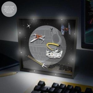 Originální lampičku v podobě zarámovaného obrazu s Hvězdou smrti si můžete sami přizpůsobit pomocí přiložených nalepovacích obrázků vesmírných plavidel ze světa Star Wars - Hvězdných válek.