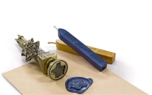 Bradavický pečetící set. SOučástí balení je kovové pečetítko s erbem Bradavic a 2 barevné vosky.