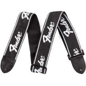 Kytarový řemen Fender Running logo Šířka 4,8 cm Délka 76 - 130 cm Černá barva s logem Fender