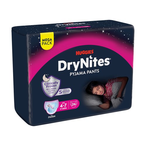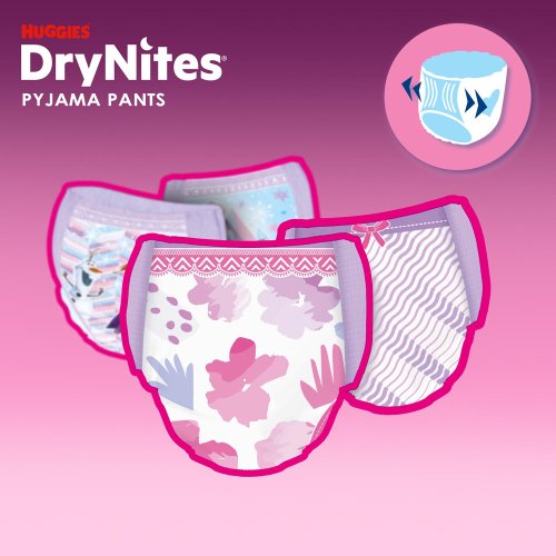DryNites® natahovací kalhotky na noc pro děti ve věku od 4–7 let a s hmotností 17-30 kg poskytují vašemu dítěti spolehlivou ochranu při nočním pomočování, aby přes noc zůstalo v suchu. Bylo klinicky ověřeno, že přispívají k lepšímu spánku v noci. Mají 5 vrstev, které zajišťují maximální ochranu před protečením, a díky svému jedinečnému designu připomínají běžné spodní prádlo. Zároveň jsou vyrobené z prodyšného materiálu, takže pokožka může volně dýchat. DryNites® natahovací kalhotky na noc umožní vašemu dítěti si bez obav užít zábavu i na dětských táborech, výletech, nebo třeba při přespávání u kamarádů.
