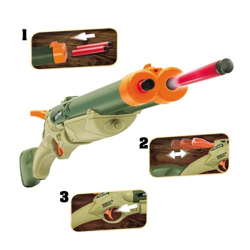 Dětská zkrácená dvojhlavňová brokovnice s dostřelem až 18 metrů.