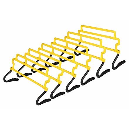 Sada šesti nastavitelných překážek Hurdle v praktickém obalu pro snadné uskladnění a přenášení. Nastavitelná překážka Merco Hurdle je univerzální tréninková pomůcka, která nalezne své uplatnění pro kondiční cvičení téměř ve všech sportovních odvětví. Skládací překážka je vyrobená z polyethylenu s vysokou hustotou. Pro větší variabilitu cvičení lze její výšku nastavit na tři různé úrovně - 14 cm, 24 cm nebo 29 cm. Šířka překážky je 44 cm a její hmotnost přibližně 380 g. Je vhodná pro použití v tělocvičnách i venku během letní přípravy.