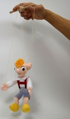 Textilní loutka s dřevěným vodícím křížem. Správná hračka 2011 - vybráno odborníky.Nevhodné do 3 let, uškrcení