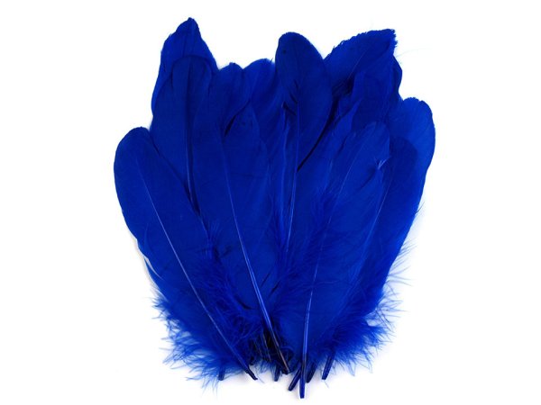 Husí peří délka 12-21 cm - modrá kobaltová (20 ks)