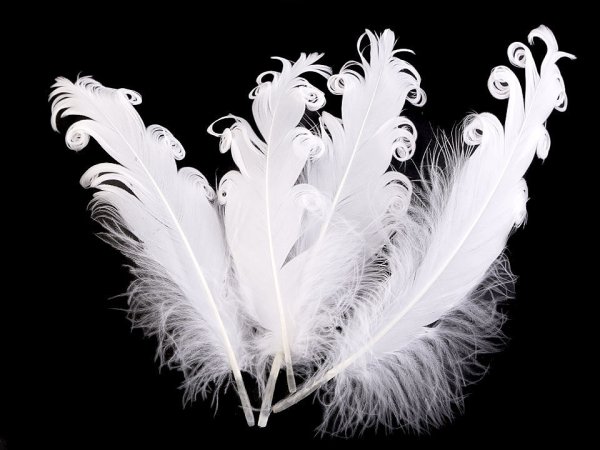 Husí peří kudrnaté délka 12-18 cm - bílá (4 ks)