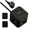 Základní informace: Kategorie: Prodlužovací kabel s USB porty Barva: Černá Rozměry: 8 × 8 × 8 cm Délka kabelu: 1,5 m Materiál: PC plast (nehořlavý, UL 94-V0) Typ zásuvek: 3× zásuvka typu E USB výstupy: 4× USB (5 V / 2,1 A, max. celkem 3 A) Typ spínače: Mikrospínač s kontrolkou Průřez vodiče: 3G 1.0 mm² Napájení: 220–240 V, 50/60 Hz, max. 10 A