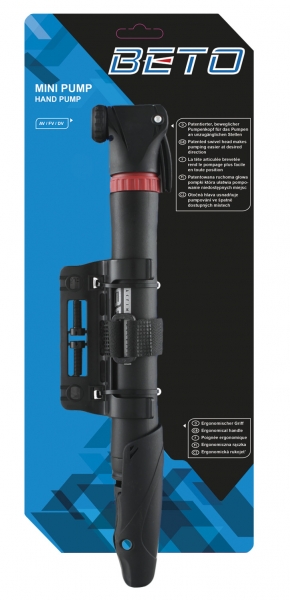 Univerzální otočná hlava pro ventily AV-auto,FV galuskový,DV - velo Otočná hlava 360st. skládací T-rukojeť Manometr: ne Rychloupínací páčka Držák na rám Délka: 275mm Hmotnost: …