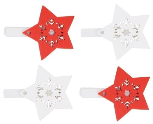 komponenty ke zdobeníHvězda dřevěná na kolíčku 4,5 cm, červená a bílá, 4 ks