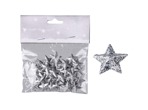 Hvězdičky s glitry 50ks 20 mm stříbrné