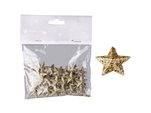 Hvězdičky s glitry 50ks 20 mm zlaté