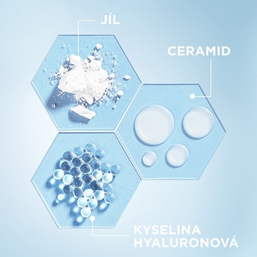 Hydratační čisticí gel proti nedokonalostem obohacený o kyselinu hyaluronovou, ceramidy a jíl intenzivně odstraňuje nečistoty, stahuje póry a současně chrání kožní bariéru.