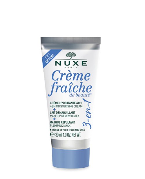 Multifunkčí přípravek na pleť 3v1, nabízí krém s hydratačním účinkem po dobu až 48 hodin, odličovací mléko a vyplňující masku v jednom. Unikátní ošetření, vhodné pro všechny typy pleti, obohacené o rostlinné mléko a sladký mandlový olej poskytuje pleti dlouhotrvající hydrataci a komfort. Po použití vypadá pokožka zdravá a plná vitality.