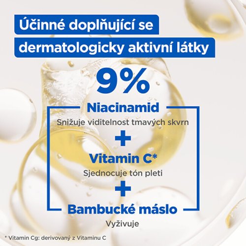 Hydratační krém proti tmavým skvrnám s jemným složením. Klinicky prokázaná redukce intenzity tmavých skvrn na obličeji, rukách i pokožce těla.