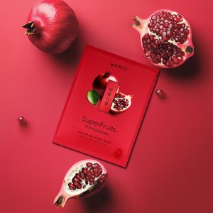 Veganská plátýnková maska SuperFruits Granátové jablko hydratuje, osvěžuje a dodává pleti energii. Obsahuje granátové jablko (1 %) s vysokým obsahem antioxidantů a trehalózu, která pomáhá udržet vlhkost a chrání pleť před vysušováním. Jemné lyocellové plátýnko perfektně přilne, chladí a zanechává pokožku příjemně svěží.