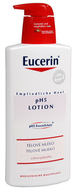 Eucerin pH5 hydratační tělové mléko je určené pro citlivou pokožku. Napomáhá udržovat mírně kyselou hodnotu pH kůže a stimuluje přirozenou ochranu pokožky. Dále podporuje regeneraci díky dexpanthenolu a poskytuje pokožce až 24 hodinovou hydrataci. Zabraňuje pronikání 90% pylů do pokožky, tudíž je vhodný i pro alergiky. Výsledkem je jemná a hebká pokožka.