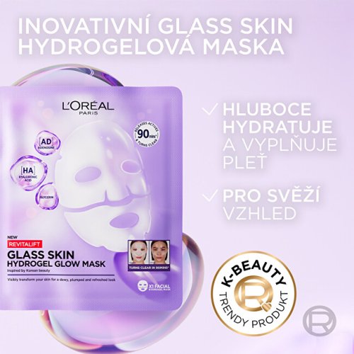 Revitalift Filler hydrogelová maska přináší rozjasňující efekt skleněné pleti inspirovaný korejskou kosmetikou. Je obohacena o kyselinu hyaluronovou, adenosin, glycerin, extrakt z pupečníku asijského a panthenol pro intenzivní hydrataci a zklidnění. Maska zajišťuje okamžitý svěží a vyplněný vzhled.