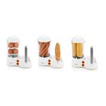 Ke správnému hot dogu neodmyslitelně patří i rozpečené křupavé pečivo. K ohřívání rohlíků slouží vertikální nástrčný trn z nerezové oceli, který je opatřen vlastním spínačem. Díky tomu jej můžete zapnout nezávisle na varné nádobce, což vám umožní připravovat stále čerstvé hot dogy i pro případné opozdilce.