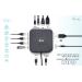 Dokovací stanice v kompaktním provedení nabízí velké množství praktických portů. K počítači či notebooku se připojuje pomocí USB-C portu s podporou Thunderbolt 3/4 a USB4. Je tak schopná na podporovaných zařízeních přenášet i napájení až 100 W. Vysokorychlostní přístup k internetu lze realizovat skrze přítomný RJ-45 port. K dokovací stanici lze připojit také až tři monitory s rozlišením 4K UHD při 30 Hz skrze rozhraní HDMI a DisplayPort. V případě zapojení pouze jednoho monitoru pak nabízí rozlišení až 5K při 60 Hz. Počítačoví hráči jistě ocení podporu vysoké obnovovací frekvence až 360 Hz (1× Full HD monitor). Pro připojení periférií jsou přítomny tři USB 3.0 porty, dva USB 2.0 porty a dva konektory USB-C. Stanici lze nainstalovat i dozadu za monitor díky VESA držáku (není součástí). Potěší také slot pro bezpečnostní zámek a vypínač dokovací stanice pro maximální úsporu elektrické energie.