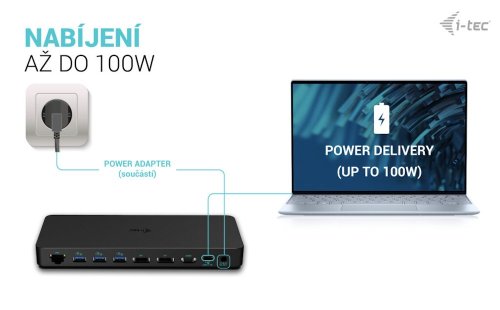 Dokovací stanice i-tec USB-C Triple Display Dock Gen2 Pro, která je kompatibilní s moderními notebooky, tablety a další výpočetní technikou. Disponuje bohatou nabídkou konektorů, abyste se při využívání periferních zařízení nemuseli omezovat. Mezi přednosti patří například podporuje až 100W napájení připojeného notebooku nebo tabletu, podpora vysokého rozlišení 4K při obnovovací frekvenci až 60 Hz nebo kombinovaný 3,5mm audio/mikroport pro rychlé připojení sluchátek, respektive headsetu.