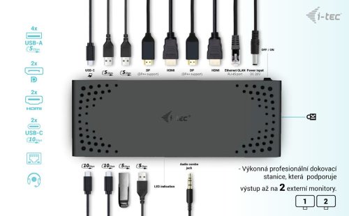 Dokovací stanice vhodná pro grafiky pracující s 5K rozlišením. K počítači či notebooku se připojuje pomocí USB-C portu s podporou Thunderbolt 3 a je tak schopná na podporovaných zařízeních přenášet i napájení 100 W. Kromě možnosti připojit jeden 5K monitor nabízí i volbu zapojit dva 4K monitory s frekvencí 60 Hz. To vše v různých kombinacích konektorů HDMI a DisplayPort. Samozřejmostí je množství USB portů, gigabitový RJ-45 port nebo audio jack pro zapojení sluchátek s mikrofonem. Dokovací stanice podporuje držák VESA pro inteligentní vertikální instalaci za monitor.