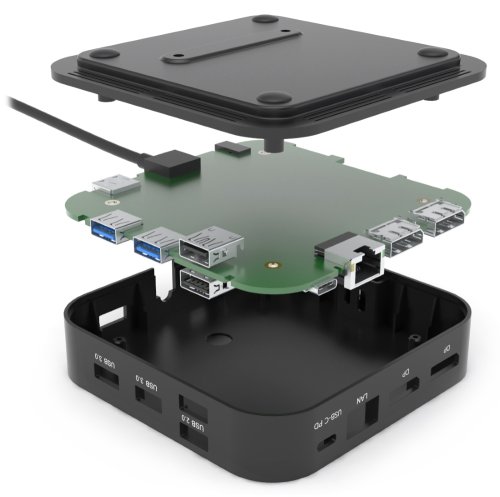Dokovací stanice podporující připojení dvou 4K monitorů. K počítači či notebooku se připojuje pomocí USB-C portu s podporou Thunderbolt 3 a je tak schopná na podporovaných zařízeních přenášet i napájení až 65 W. Vysokorychlostní přístup k internetu lze realizovat skrze přítomný RJ-45 port. Pro připojení periférií jsou přítomny tři USB 3.0 porty, dva USB 2.0 porty a jeden port USB-C. Pro připojení sluchátek či mikrofonu pak slouží kombinovaný 3,5 mm konektor. Potěší také slot pro bezpečnostní zámek nebo přepínač pro zapnutí a vypnutí stanice.