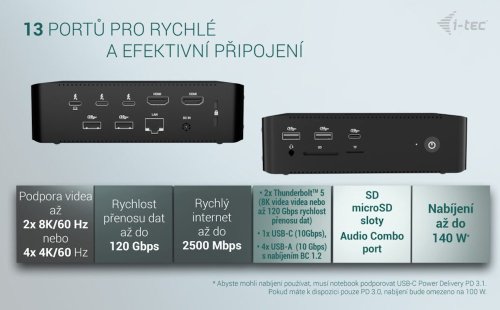 Extrémně vysoký výkon, ultrarychlý přenos dat a podpora rozlišení až 8K/60 Hz. Nejvýkonnější dokovací stanice i-tec na trhu!