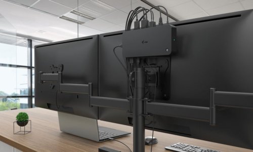 Dokovací stanice nabízející velké množství praktických portů. Připojení k počítači je realizováno skrze USB-C kabel s podporou Thunderbolt 3. Stanice taktéž nabízí USB-C Power Delivery až 100 W, který je určen pro napájení připojeného notebooku či tabletu pomocí vašeho originálního síťového adaptéru. K dokovací stanici lze připojit až tři monitory skrze rozhraní HDMI či DisplayPort s maximálním rozlišením až 4K. Připojení ke třem monitorům však bude možné pouze v případě notebooku s portem Thunderbolt 3/4, případně USB-C portem podporujícím přenos videa. Samozřejmostí jsou tři USB porty, spolehlivé a rychlé připojení k internetu díky integrovanému LAN portu a nechybí ani podpora audio vstupu/výstupu. Dokovací stanici lze nainstalovat i dozadu za monitor s podporou VESA uchycení díky VESA držáčku (není součástí), čímž získáte jak maximální pracovní efektivitu díky rozšiřitelnosti portů, tak i krásně uklizený stůl bez kabelů.