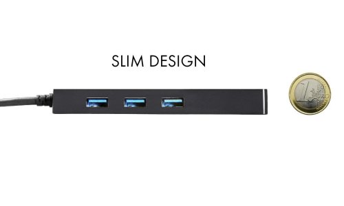 USB hub pro notebooky, tablety a smartphony s konektorem USB-C nebo Thunderbolt 3 nabízí rozšíření o tři USB 3.0 porty a jeden ethernetový port RJ-45. Hub má vestavěnou přepěťovou ochranu pro případ zkratu na periferních zařízeních. Zařízení je kompatibilní s běžně používanými operačními systémy Windows, Mac OS X, Linux a Android.