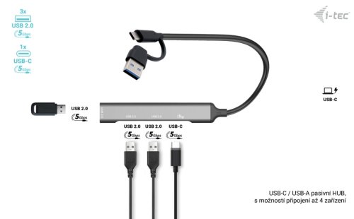 I-Tec USB-A/USB-C Metal HUB 1x USB-C 3.1 + 3x USB 2.0