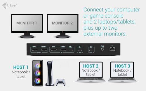 i-tec USB-C KVM Docking station for 3 Hosts, Dual Display, Power Delivery 1x 92W/2x 65W