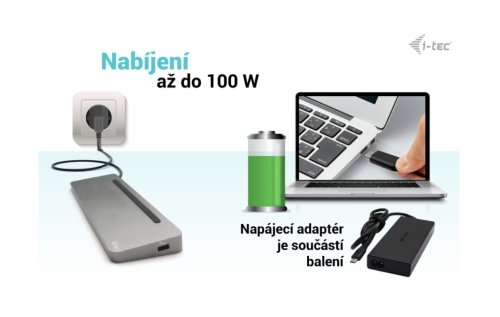Univerzální napájecí adaptér • Tento univerzální napájecí adaptér USB-C s výkonem 100 W je skvělou volbou pro napájení jakéhokoli notebooku nebo jiného zařízení vybaveného konektorem USB-C, který podporuje USB-C Power Delivery s maximální potřebou výkonu 100 W.