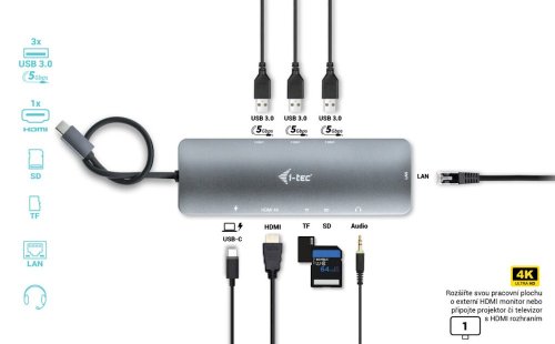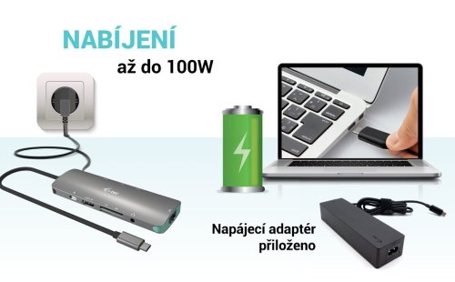 I-TEC USB-C Metal Nano Dock 4K HDMI/LAN 100 W + nabíječka