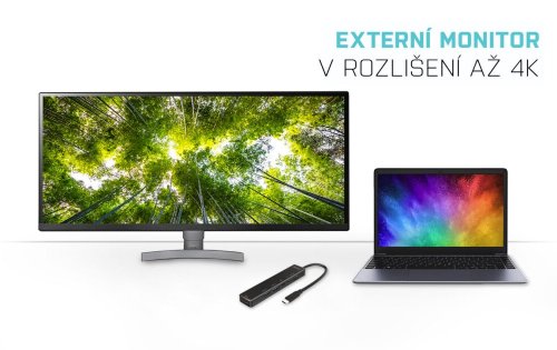 Porty: 1× HDMI, 1× USB 3.0, 1× USB 2.0, 1× USB-C (pouze napájení), 1× čtečka SD karet, 1× čtečka microSD karet