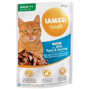 Kompletní vlhké krmivo s tuňákem a sleděm v chutném želé pro dospělé kočky od 1 roku.
