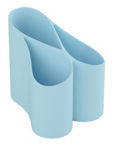 Stojánek na psací potřeby z pevného plastu. 3 stejně velké přihrádky. Rozměry: 10,5 x 11,0 x 12,5 cm