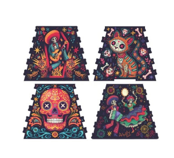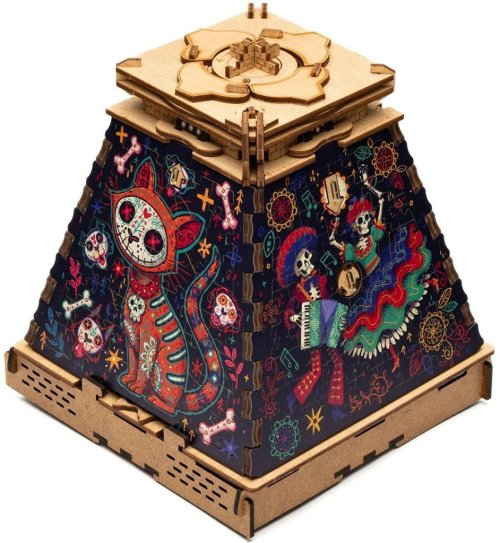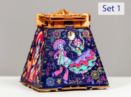 Pokud máte rádi výzvy a změnu, vytvořte další vrstvu hlavolamu Pyramida Slunce (ID5019) poskládáním tohoto puzzle na boční stěny pyramidy a získejte tak nový vzhled Vaší nevšední dekorace. Připevnění další vrstvy je snadné, původní obrázek překryjte černou vrstvou, připojte rámečky a poskládejte. Tato druhá vrstva puzzle má ale pouze dekorační účel, nelze ji nijak zapojit do řešení hlavolamu. Hlavní vlastnosti: rozšíření hlavolamu Pyramida Slunce – ID5019obsahuje 200 dílků ve 4 sadách (každá sada pro jednu stěnu pyramidy), 4 rámečkypro 1 až 4 hráčedoba hry 90 až 120 minut