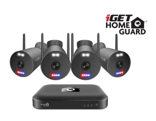 Bezdrátový kamerový WiFi 3K systém iGET HOMEGUARD HGNVK109104 - 10ti-kanálový 3K rekordér NVR + 4x IP 3K barevná venkovní kamera se zvukem, nočním a LED svícením.