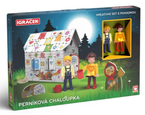 Vymaluj, sestav a hraj si! Kreativní set Igráčků s kartonovou skládací chaloupkou s předtištěnými motivy k vymalování podporuje zručnost a fantazii dětí. Set obsahuje dvě postavičky Igráčků Jeníčka a Mařenky a postavičku ježibaby z tvrdého kartonu, se kterými si děti mohou zahrát třeba divadlo. Doplněno originálním textem pohádky O perníkové chaloupce s netradičním a zábavným moderním pojetím v CZ a SK verzi. Poznámka: Neobsahuje pastelky, barvy ani štětce.
