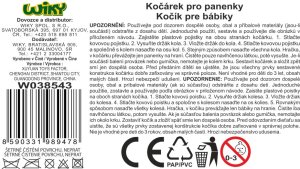 Kočárek hluboký s taškou pro panenky. Rozměry 66x39x74 cm. Návod součástí.