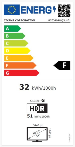 Napájení: Interní, AC 100–240 V, 50/60 Hz Spotřeba [W]: 60 W (typická) Stand By režim [W]: 0.5 W Třída energetické náročnosti: F