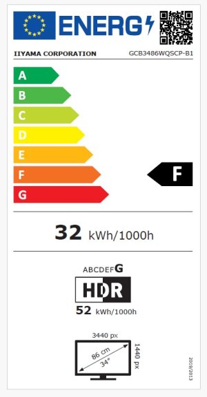 Napájení: interní, AC 100–240V, 50Hz Spotřeba [W]: 52 Stand By režim [W]: 0.5 Třída energetické náročnosti: F