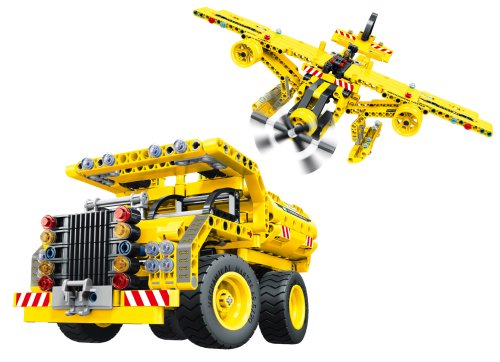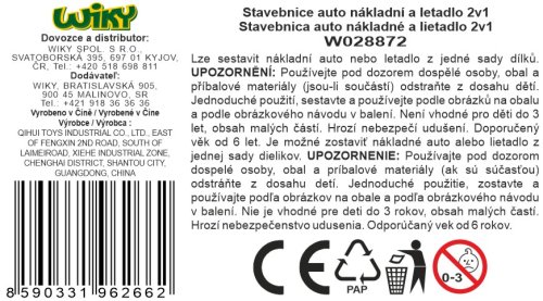 iM.Master Stavebnice Nákladní auto sklápěč a letadlo 2v1. Velikost nákladního auta 22x11x12cm, velikost letadla 37x25x13 cm. Lze sestavit z jedné sady nákladní auto nebo letadlo.