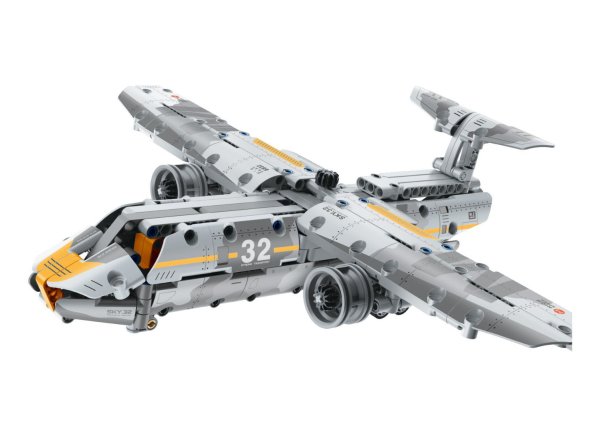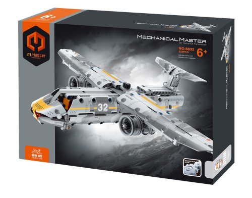 iM.Master Stavebnice letadlo vojenské. Rozměry 37,5x30,2x11 cm. 329 dílků. Vyklápěcí nákladová plocha, otočné vrtule.