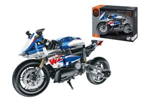 iM.Master Stavebnice motorka modrá. Rozměry 32,4x17x11 cm. 542 dílků. Otáčecí zadní kolo s řetězem, fungující zadní tlumič.
