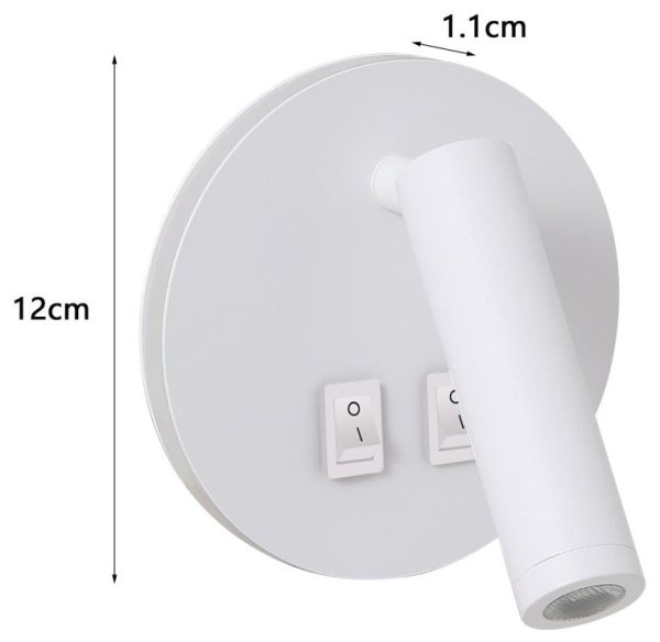Nástěnné bodové LED svítidlo s výkonem 6 W a dvěma zdroji světla. Hlavní směrové světlo pro přímé osvětlení lze otáčet v rozsahu 330° a vyklápět o 90°, což umožňuje přesné zacílení tam, kde je potřeba. Jemné nepřímé kruhové světlo je ideální pro noční podsvícení. Světelné zdroje lze ovládat nezávisle na sobě pomocí dvou vypínačů umístěných na těle svítidla, což poskytuje maximální flexibilitu v osvětlení. Univerzálnost lampičky zvyšuje možnost instalace i na strop.