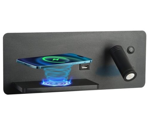 Nástěnné bodové LED svítidlo, které přináší styl a multifunkčnost. Disponuje nastavitelným ramenem se směrovým světlem o výkonu 3 W pro pohodlné večerní čtení a nepřímým osvětlením o výkonu 3 W pro příjemnou, intimní atmosféru. Samozřejmostí jsou dva samostatné vypínače umístěné na základně. Integrované Qi bezdrátové nabíjení a USB port umožňují snadné dobíjení mobilních zařízení.