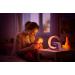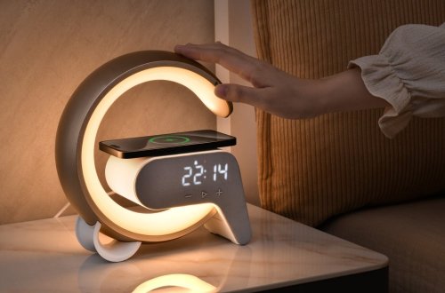 Netradiční LED stolní lampička s praktickým digitálním displejem a s efektním RGB podsvícením. Nabízí teplý odstín světla a plynulé stmívání. Tato lampička je ideální do dětských pokojíčků díky možnosti přehrávání šesti různých přírodních zvuků či bílého šumu k večernímu zklidnění. LED displej disponuje možností ztlumení i úplného vypnutí. Pro přehrávání hudby z mobilního zařízení bez nutnosti připojení kabelu je připraven Bluetooth reproduktor. K dispozici je navíc i duální budík pro dva různé časy probuzení, bezdrátová nabíječka standardu Qi a nabíjecí USB port pro nabíjení mobilních telefonů.
